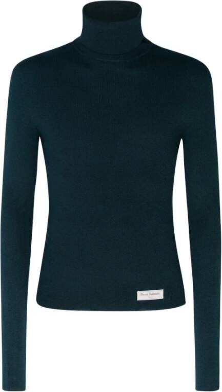 Balmain heren poloshirt in zwart merino wolmix gebreid ontwerp met knoopsluiting op de voorkant, korte mouwen, jacquard patroon, rechte zoom.