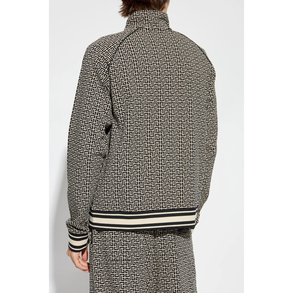 Maak kennis met de Balmain Zip-up Sweatshirt, een perfecte mix van modern design en klassieke elegantie. Dit item is voorzien van geometrische motieven op een effen zwarte achtergrond, wat zorgt voor een verfijnde look die geschikt is voor elke gelegenheid. Belangrijkste kenmerken: Zwart | Beige | Katoen | Elastaan | Volledige ritssluiting | Hoge kraag | Geometrische motieven | Elastische ribbels | Zijzakken | Designer logo patch | Afmetingen en pasvorm: Regular fit | Samenstelling en onderhoud: 95% Katoen | 5% Elastaan | Machinewas koud, droogtrommel laag