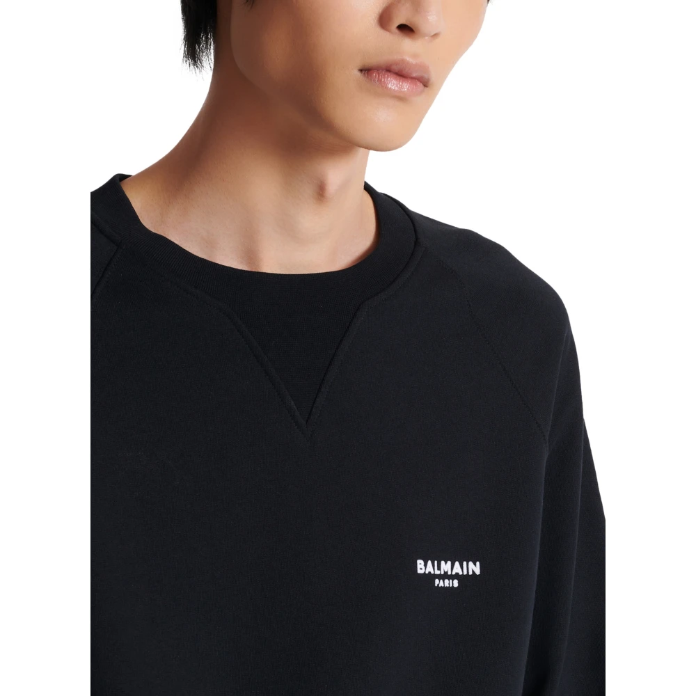 Ontdek de Balmain Paris Flocked Sweatshirt, een stijlvolle mix van comfort en iconisch design. Met een relaxte pasvorm en een opvallend flocked logo is deze sweatshirt perfect voor casual gelegenheden. Belangrijkste kenmerken: Zwart | 100% Katoen | Ronde hals | Lange mouwen | Contrasterend flocked Balmain Paris logo op de voorkant | Geribbelde boorden | Afmetingen en pasvorm: Relaxte pasvorm | Samenstelling en onderhoud: 100% Katoen | Machinewas koud, droogtrommel laag.