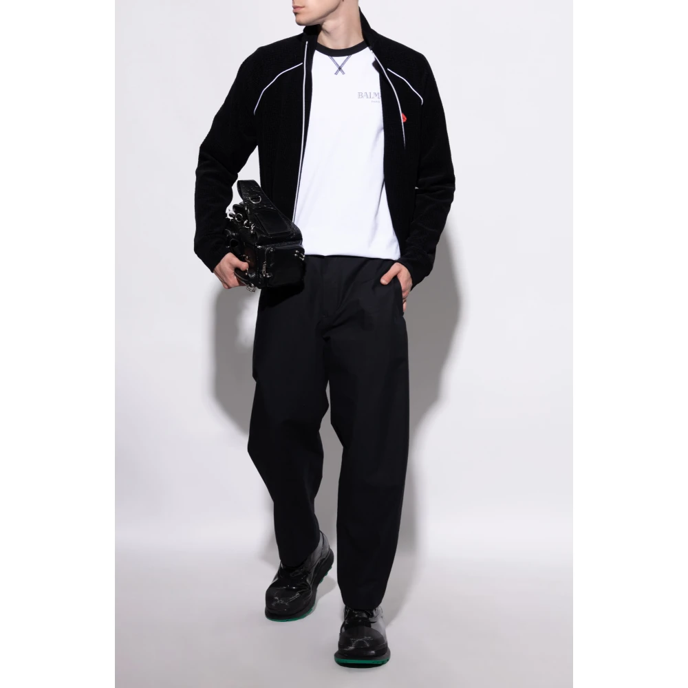 Ontdek de Monogram Sweatshirt van het legendarische modehuis Balmain, die een eerbetoon brengt aan klasse en verfijning. Gemaakt van de hoogste kwaliteit katoen, belichaamt het luxe en elegantie. De zwarte achtergrond van de sweatshirt dient niet alleen als basis voor het subtiele monogrampatroon, maar ook als het perfecte contrast voor de gouden rits en rode borduursel in de vorm van lippen, wat karakter toevoegt. Witte biezen langs de schouders benadrukken verder het strakke snit. Ontworpen door mode meesters zoals Oscar de la Renta en Olivier Rousteing, combineert de sweatshirt een gedurfd ontwerp met jeugdige aantrekkingskracht. Twee insteekzakken voegen praktisch nut toe, waardoor deze sweatshirt de perfecte keuze is voor fans van extravagantie. Waarom ZOU U DIT Product Kopen? * Elegant ontwerp van het prestigieuze modehuis Balmain. * Uniek monogrampatroon en kenmerkende details. * Gemaakt van de hoogste kwaliteit katoen. * Comfortabel om te dragen dankzij praktische zakken. Model's Afmetingen Hoogte: 193 cm Borst: 95 cm Taille: 82 cm Heupen: 93 cm Model draagt maat: L