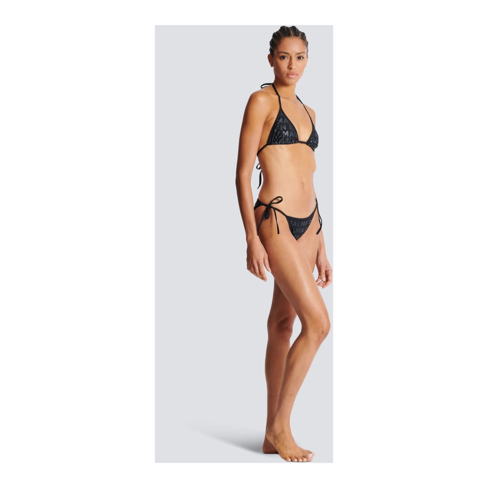 Tweedelig badpak met Balmain-logo's Driehoekige top Hals- en rugsluiting met 2 bindriemen Laag uitgesneden onderkant met zijbandjes Allover logo's Model meet 179 cm en draagt maat 36 Hoofdmateriaal: 80% polyamide 20% elastaan Gemaakt in Itali Artikel: Bkb 902110