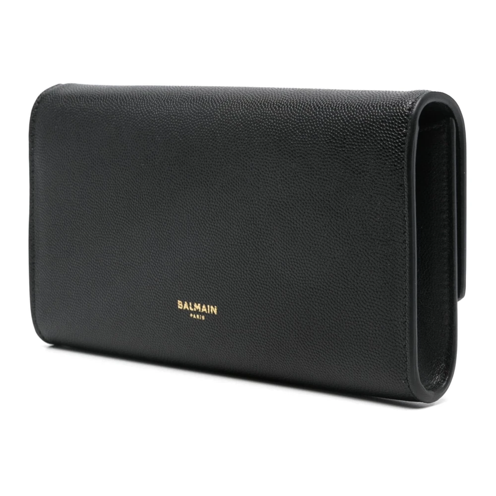 Verrijk je stijl met deze Balmain Embleme Wallet on Chain gemaakt van generfd kalfsleer