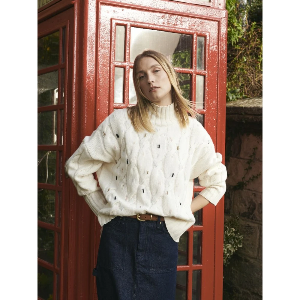 Blijf gezellig en stijlvol in deze oversized gebreide coltrui van Barbour. Gemaakt van een gespikkeld garen met geribbelde randen en afhangende schouders. Kleur: Wit. Materiaal: 80% wol, 20% polyamide. Handwas op 30C.