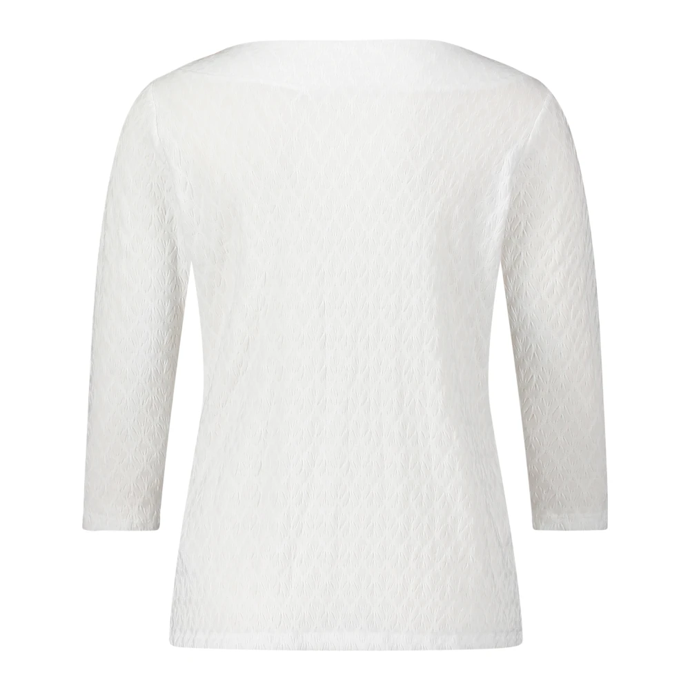 Deze Betty Barclay blouse combineert moeiteloos basis en extravagantie. De lichte taille snit, effen look en U-boot halslijn creren een tijdloze basis. De 3/4 mouwen met gespen, stof-materiaalmix en een vrouwelijke plooi met decoratief detail geven het shirt een extravagante touch.