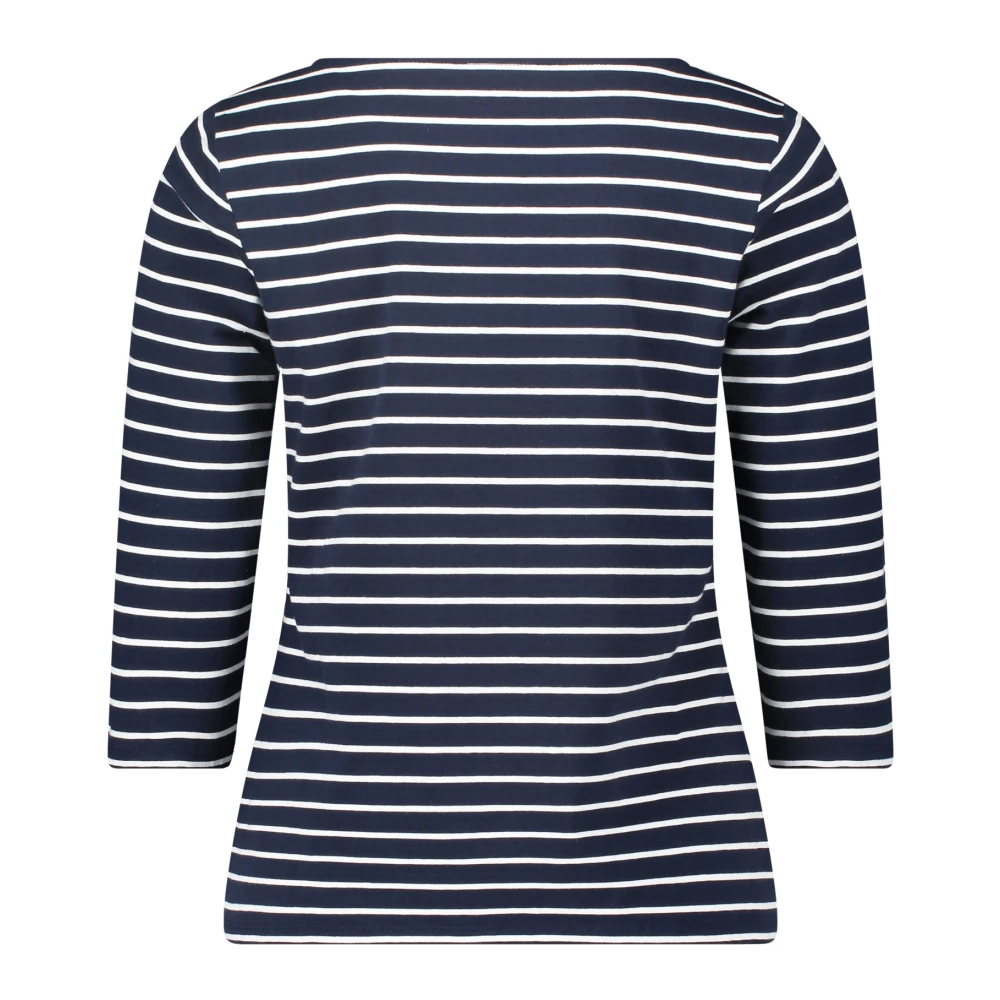 Blijf koel en casual in deze gestreepte longsleeve top van Betty Barclay. Gemaakt van comfortabele jersey stof, deze must-have top heeft een lichte getailleerde pasvorm, klassieke strepen, een relaxte U-boot halslijn en 3/4 mouwen. Perfect voor informele gelegenheden, dit veelzijdige en stijlvolle stuk voegt een vleugje casual elegantie toe aan je look!