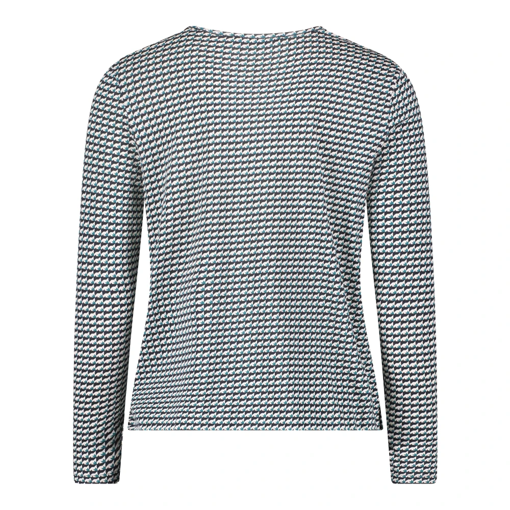 Verhoog je stijl met deze vrouwelijke en modieuze Betty Barclay printshirt. Met lange mouwen met ruches en een ronde halslijn met sleutelgatuitsnede, is dit shirt versierd met een aantrekkelijke grafische print en een split voor een unieke look. De figuurflatterende pasvorm accentueert op een stijlvolle manier de vrouwelijke silhouet.