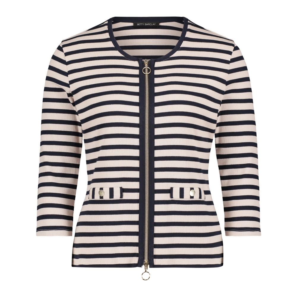 Upgrade je casual look met deze stijlvolle Betty Barclay cardigan voor vrouwen. Met 3/4 mouwen en een ronde hals is deze shirtjas een modieuze eyecatcher. Het klassieke streepjespatroon voegt een frisse touch toe, terwijl de getailleerde pasvorm flatteert. Gemaakt van comfortabel materiaal en met een tweewegritssluiting voor flexibel dragen. Ideaal voor ontspannen alledaagse outfits, biedt deze veelzijdige jas een moderne en comfortabele stijl.