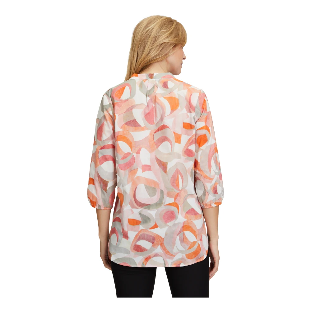 Deze Betty Barclay instapblouse is gemaakt van katoen en heeft een 3/4 mouw en een V-hals. De opstaande kraag en paisley-patroon maken het modieuze ontwerp compleet. De figuurvormende pasvorm en relaxte snit maken deze blouse tot een comfortabele metgezel voor je nieuwe casual look.