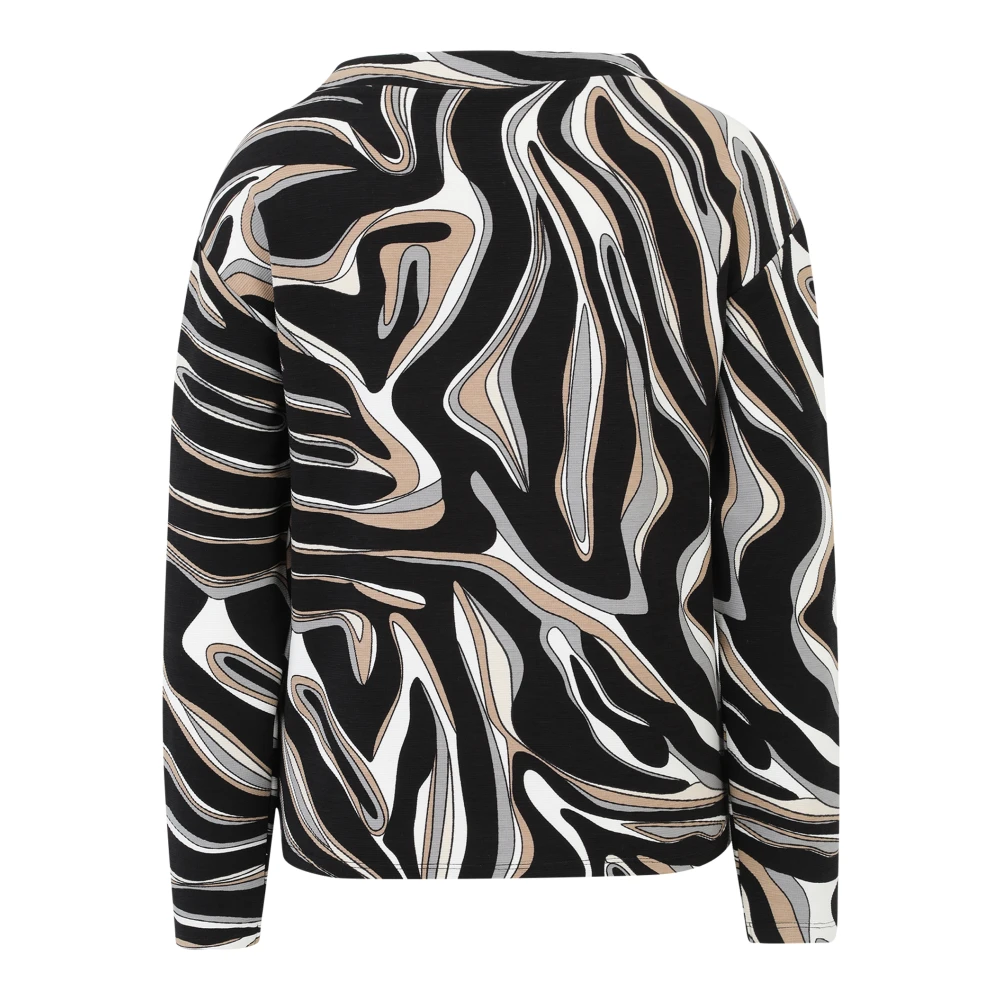 Deze casual sweatshirt in een materiaalmix heeft lange, oversized mouwen en een praktische opstaande kraag. Het opvallende dierenpatroon en de gestructureerde oppervlakte geven het een moderne, stijlvolle uitstraling. Perfect voor een casual look, biedt het hoog comfort en is veelzijdig te combineren. Een trendy kledingstuk dat geschikt is voor zowel ontspannen dagen als stijlvolle outfits.
