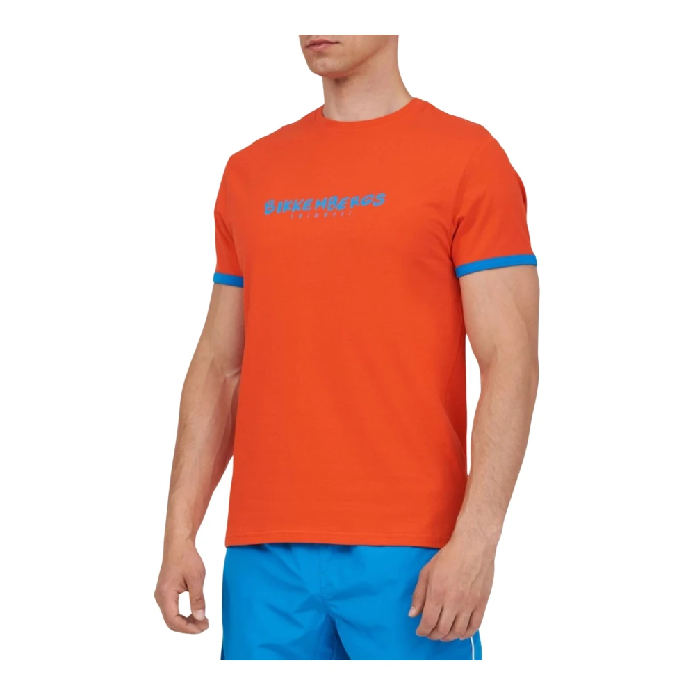 Verhoog je stijl met dit heren t-shirt van het merk Bikkembergs. Met een effen kleur voor tijdloze elegantie is dit shirt versierd met het merklogo in het midden, wat een stijlvol en herkenbaar middelpunt creert. Gemaakt van hoogwaardige stoffen, zorgt het voor comfort en duurzaamheid. Een essentieel stuk voor mannen die op zoek zijn naar een onderscheidende en trendy look.