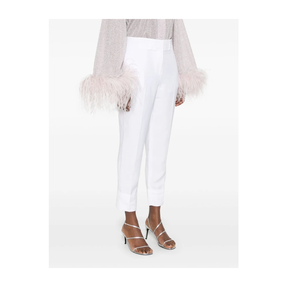 Upgrade je garderobe met de witte Slim-fit broek van Blugirl. Gemaakt van een luxueuze mix van 77% viscose en 23% linnen, bieden ze stijl en comfort voor elke gelegenheid. Perfect voor een chique dagje uit of een verfijnde avondlook. Omarm elegantie vandaag!