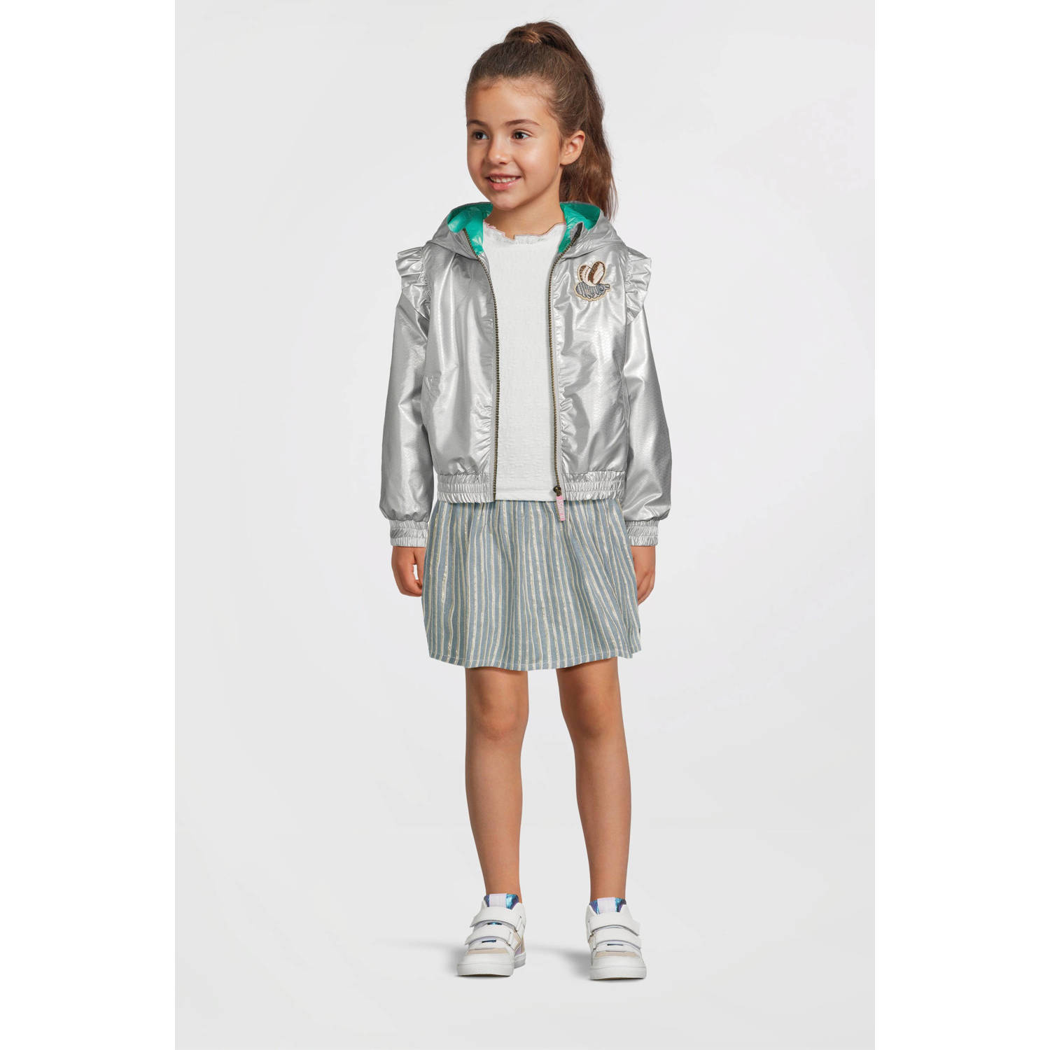 Deze B.Nosy meisjesjas is perfect voor de lente. De zilverkleurige zomerjas heeft een ritssluiting en capuchon. Glimmende details en ruches maken de jas speels. Waterafstotend en met lange mouwen, voorzien van zakken aan de voorkant.