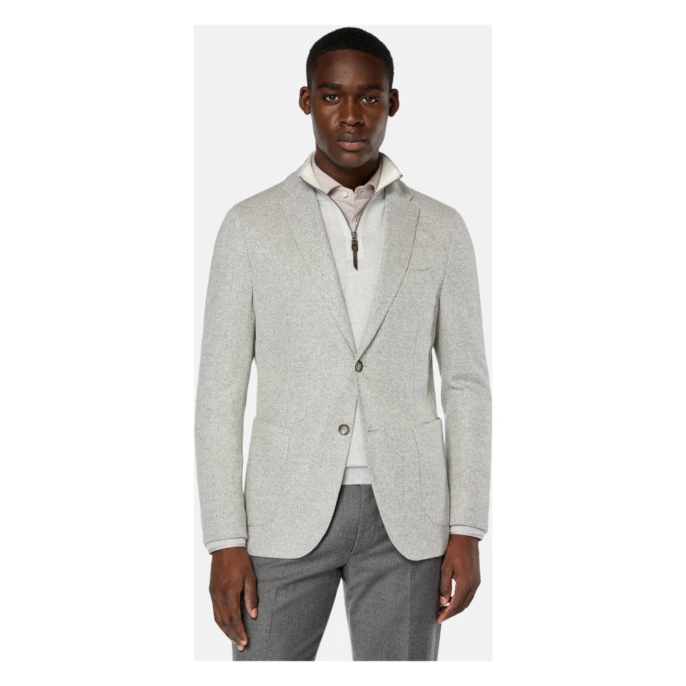De Boggi Milano B Jersey Katoenen Blend Jas biedt een verfijnde touch met zijn micro-haringbone design, perfect voor zowel formele als casual gelegenheden. Dit enkelknoops, ongevoerde jasje heeft opgestikte zakken, wat zorgt voor een mix van stijl en functionaliteit. Belangrijkste kenmerken: Grijs | Katoenen blend | Uitstekende stretch | Extra comfort | Lichtgewicht | Spits revers | Opgestikte zakken | Haringbone patroon | Afmetingen en pasvorm: Regular fit | Samenstelling en onderhoud: 40% Katoen | 35% Viscose | 23% Polyester | 2% Elastaan