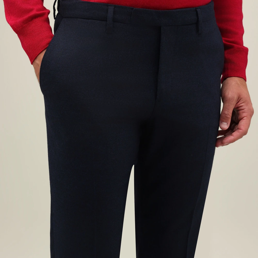Pak van B-Line by Boglioli, gemaakt van superlicht flanel. Dit pak biedt de perfecte combinatie van stijl en comfort, ideaal voor de moderne heer. Het volledig gevoerde jasje heeft een sluiting met twee knopen en klepzakken, wat een vleugje verfijning en functionaliteit toevoegt. De onberispelijke constructie en op maat gemaakt ontwerp zorgen voor een strakke en eigentijdse silhouet. Het pak is afgewerkt met Zeta-broeken, die een verborgen elastische tailleband hebben die een comfortabele en verstelbare pasvorm biedt zonder esthetiek in gevaar te brengen. Dit innovatieve detail zorgt voor superieur comfort, perfect voor lange werkdagen of formele evenementen.