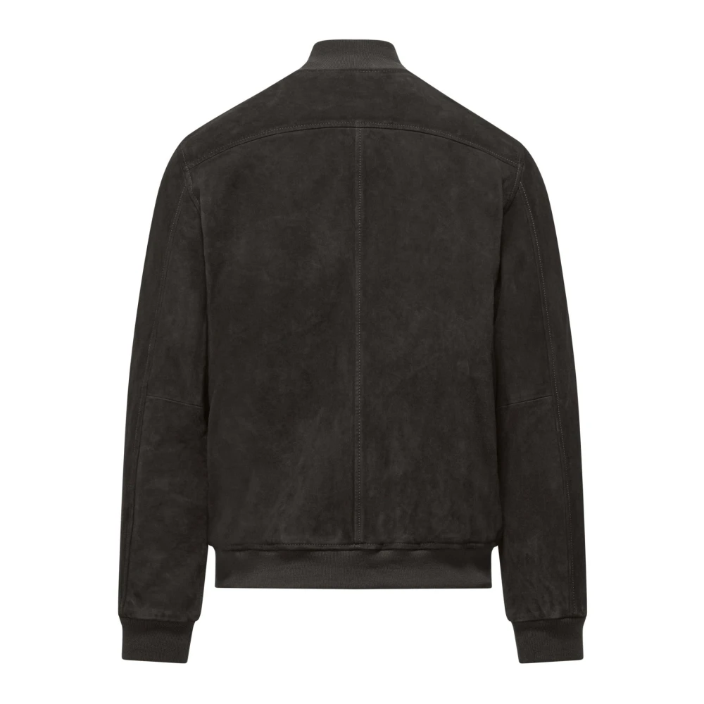 Gewaxte sude bomberjack, geknoopt, met geribbelde manchetten, zoom en kraag. Interieur gevoerd met zachte sherpa fleece. Gemaakt van: echt, kledingbehandeld gewaxt sude geitenleer, eventuele onvolkomenheden moeten worden beschouwd als een verdienste van de exclusiviteit van het jack. Sherpa fleece gevoerd interieur. Manchetten en onderkant van jack afgewerkt met geribbelde elastische banden. Knoopsluiting met knoopsgat. Voorzakken en binnenzakken.
