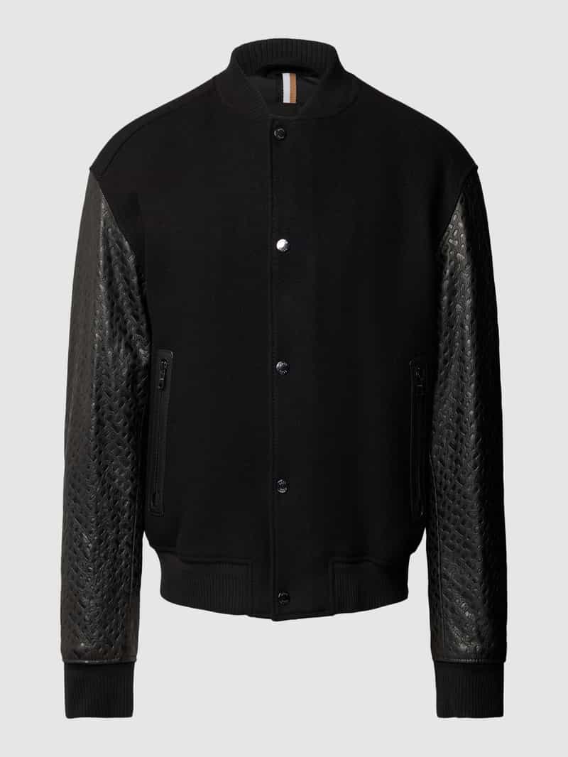 Herenblouson van BOSS. Scheerwolmix. Recht model. Model 'Motiver'. Effen design. Opstaande kraag. Knoopsluiting. Ritszakken