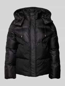 Damesjack van BOSS. Recht model. Capuchon. Model 'Carbora2'. Opstaande kraag. Drukknopen. Deelbare ritssluiting. Klepzakken. Ruglengte bij maat 36: 56 cm. Schouderbreedte bij maat 36: 38 cm. Borstomvang bij maat 36: 45 cm. Mouwlengte bij maat 36: 60 cm