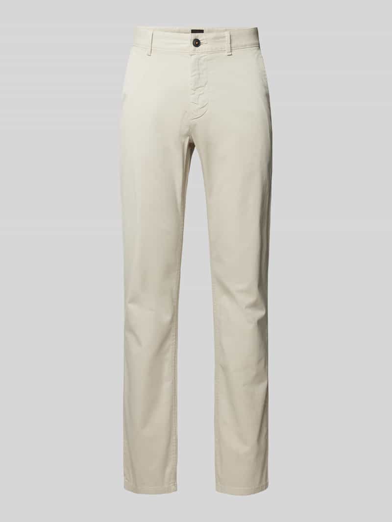 Chino van BOSS Orange voor heren. Look: effen. Pasvorm: Slim fit. Details: Riemlussen. Sluiting: Knoop en blinde ritssluiting. Zakken: steekzakken opzij, strookzakken aan de achterkant. Materiaal: Katoenmix. Bandwijdte bij maat 32/32: 41 cm. Binnenbeenlengte bij maat 32/32: 80 cm