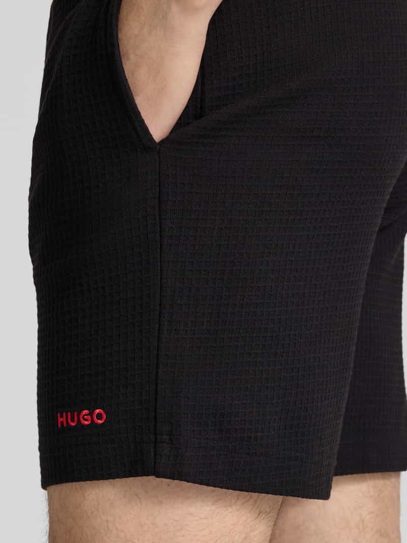 Sweatshort voor heren van HUGO. Katoenmix. Los model. Model 'Austin'. Elastische band met tunnelkoord. Structuurpatroon. Labeldetail. Bandwijdte bij maat M: 40 cm. Binnenbeenlengte bij maat M: 20 cm
