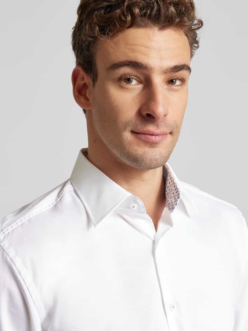 Zakelijk overhemd van BOSS voor heren. Look: effen met motief aan de binnenkant. Pasvorm: Slim fit. Overhemdkraag: Kentkraag. Knoopsluiting: doorknoopsluiting. Motief binnenkant: gebloemd. Details: Pas. Sluiting: enkele knoopsluiting. Mouwboord: Manchet met gebloemd design. Rompzoom: afgerond. Type manchet: Sport. Gelegenheid: Business. Materiaal: puur katoen. Ruglengte bij maat 41L: 83 cm. Borstomvang bij maat 41L: 52 cm. Schouderbreedte bij maat 41L: 42 cm. Mouwlengte bij maat 41L: 71 cm