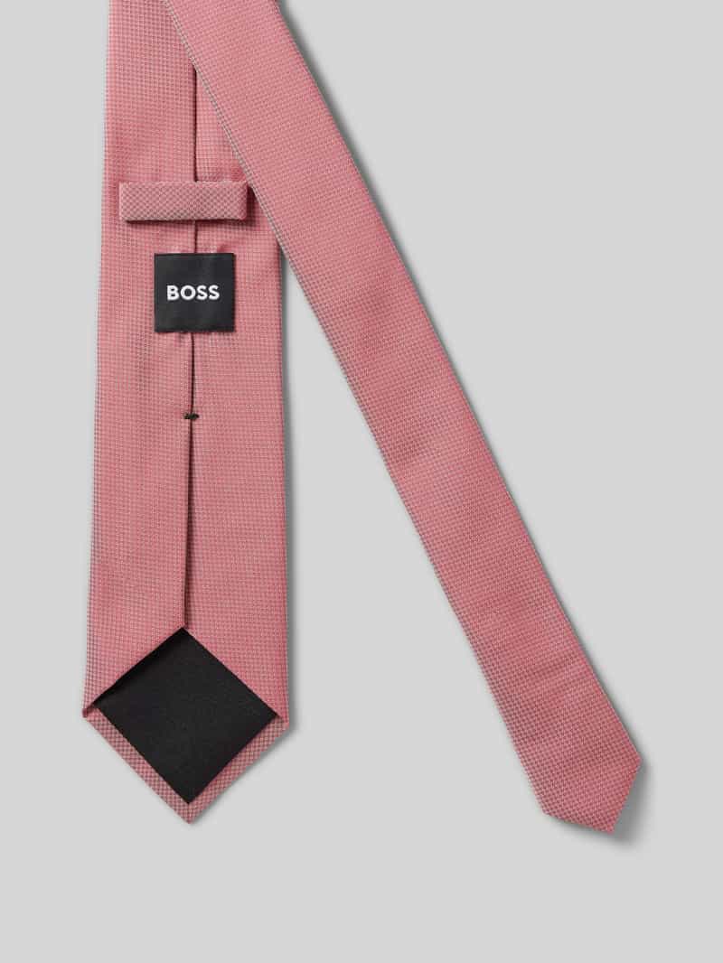 Herenstropdas van BOSS. Materiaalmix met zijde. Klassiek model. Labeldetail. Breedte bij maat 1: 7 cm
