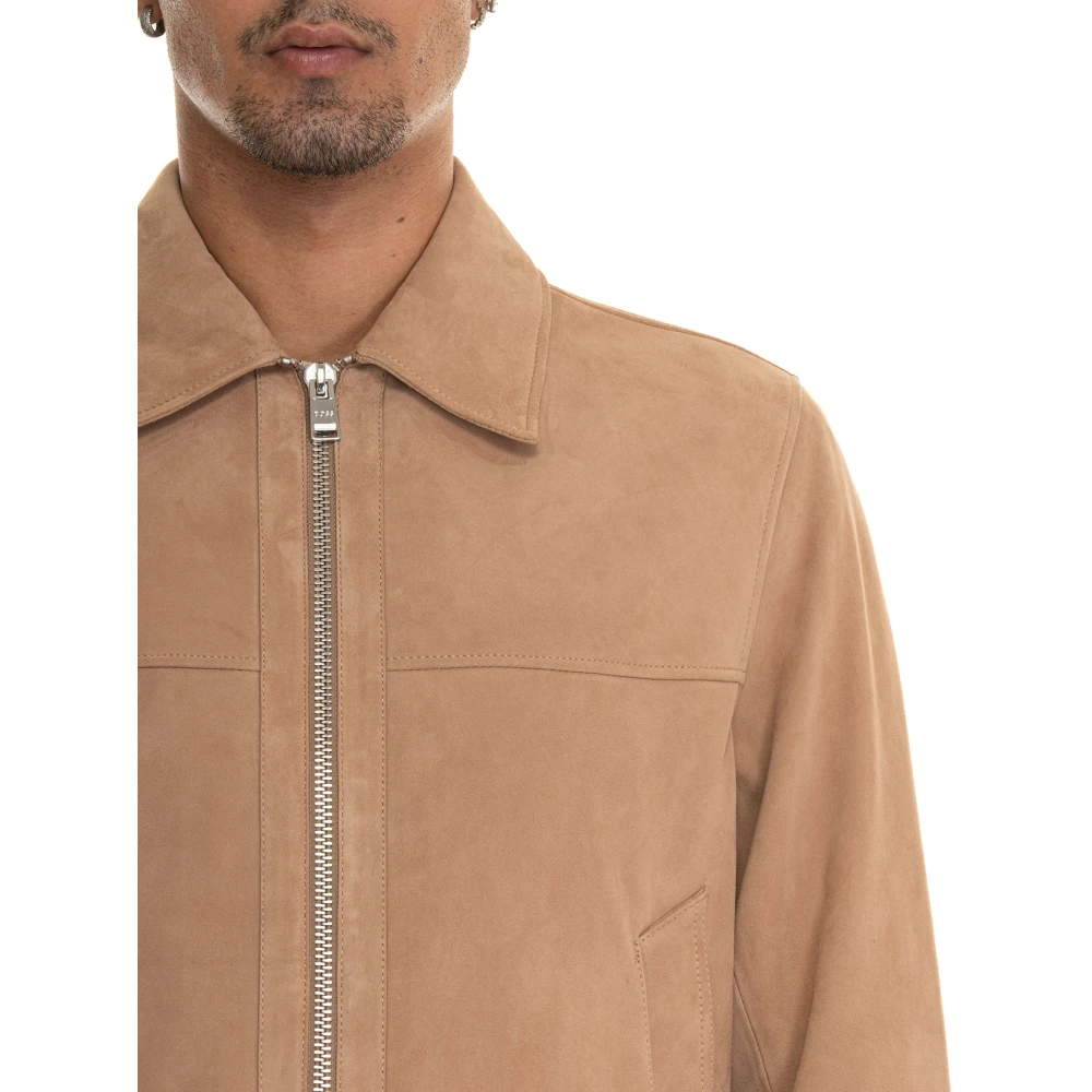 Boss Zamsleren leren jack met ritssluiting Beige Heren
