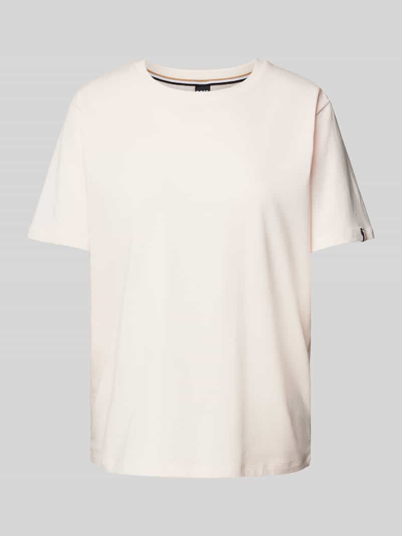 T-shirt van BOSS voor dames. Mix van katoen en elastaan. Recht model. Ronde hals. Labelprint. Labeldetail. Ruglengte bij maat S: 59 cm
