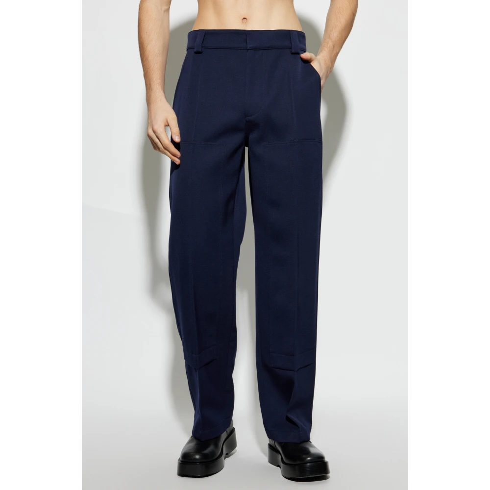 Maak kennis met Woolen Men's Trousers van het gerenommeerde merk Bottega Veneta, dat sinds 1966 traditioneel vakmanschap combineert met innovatieve methoden. Deze broek, in een diepe marineblauwe kleur, is gemaakt van een materiaal dat doet denken aan wol, waardoor ze een Luxueus Karakter hebben. De broek heeft een klassieke, rechte pasvorm met wijde pijpen. De taille heeft Riemleggers voor een perfecte pasvorm. Subtiele stiksels en zijzakken zijn zichtbaar aan de voorkant, terwijl aan de achterkant twee klepzakken elegantie toevoegen. Ze worden gesloten met een rits, haak en knoop. Elk detail, van afwerkingen tot stiksels, getuigt van aandacht voor detail en vakmanschap van hoge kwaliteit. Waarom ZOU U DIT Product Kopen? * Uniek ontwerp van Bottega Veneta, bekend om precies vakmanschap. * Luxueus materiaal dat doet denken aan wol. * Klassieke snit met een moderne touch. * Zorgvuldig vervaardigde details die elegantie benadrukken. Model's Afmetingen Hoogte: 185 cm Borst: 92 cm Taille: 74 cm Heupen: 91 cm Model draagt maat: 50