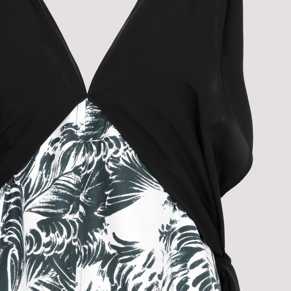 Upgrade je stijl met deze Bottega Veneta Black Silk Printed Silk Long Dress. Gemaakt van pure zijde met zwarte en bedrukte panelen, heeft deze jurk een diepe V-hals en rug, knoopdetail op de schouders, mouwloos ontwerp, zijdelings verlengd lintdetail, onzichtbare ritssluiting aan de achterkant en een lange lengte. Perfect voor elke gelegenheid.