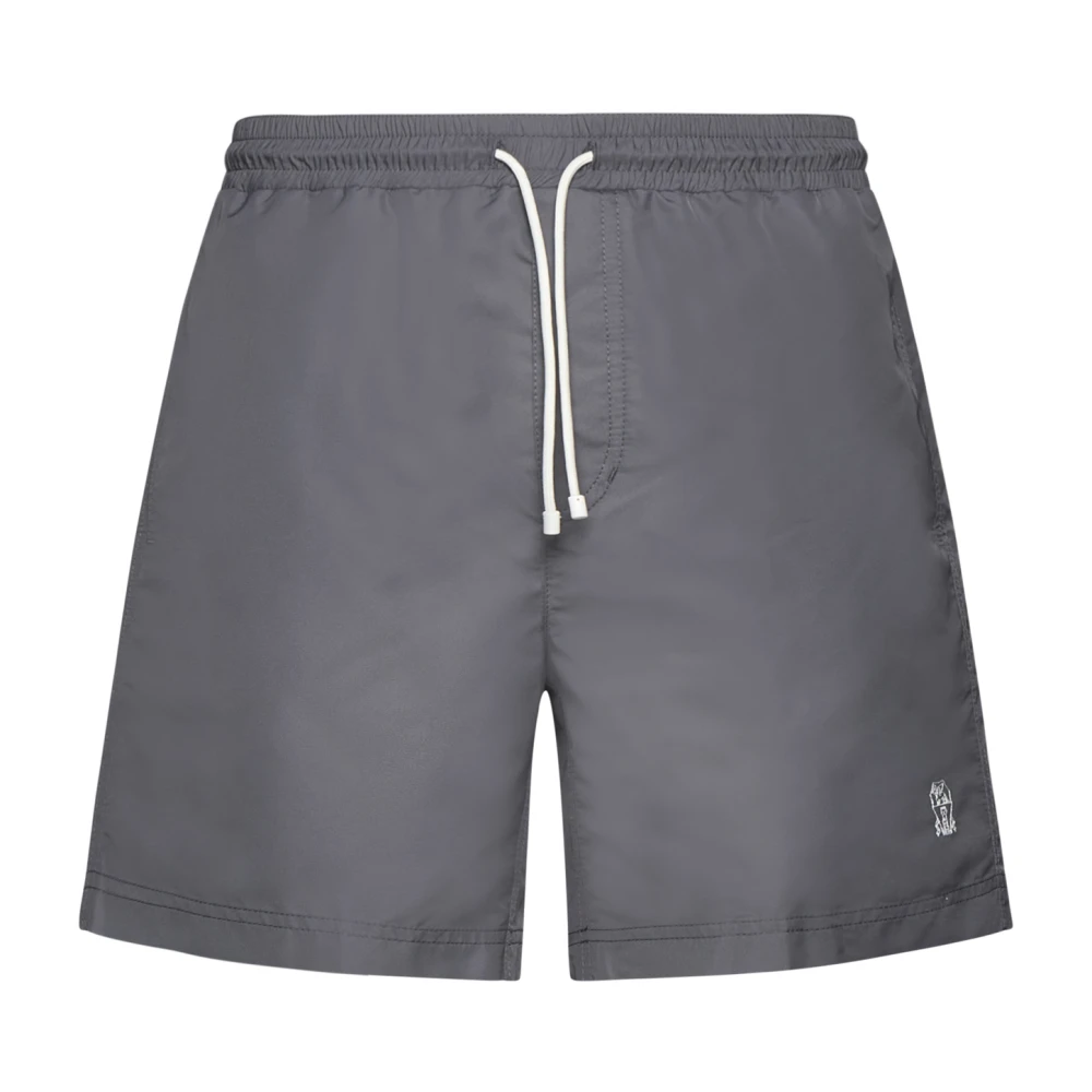 Upgrade je strandlook met deze asgrijze zwemshorts van Brunello Cucinelli. Gemaakt van hoogwaardig nylon, ze hebben logoborduursel aan de zoom, een elastische tailleband met trekkoord, meerdere zakken en interne mesh-briefs. Wordt geleverd met een handige tas voor transport. Maat: Internationale Standaard; het label van de ontwerper geeft Normale taille / Normale pasvorm Waarheidsgetrouw aan maat.