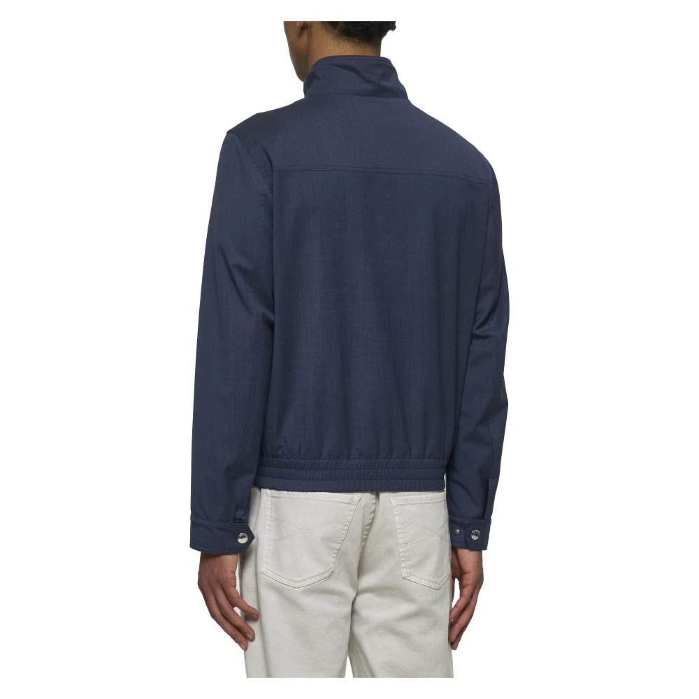 BRUNELLO CUCINELLI Blauwe Wol Staande Kraag Jas Blue Heren