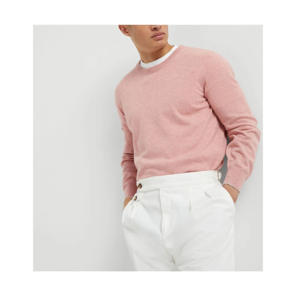 Upgrade je garderobe met deze lichtroze ronde hals kasjmier knitwear van Brunello Cucinelli. Met lange mouwen en geribbelde manchetten en zoom is dit stuk perfect voor de moderne man.