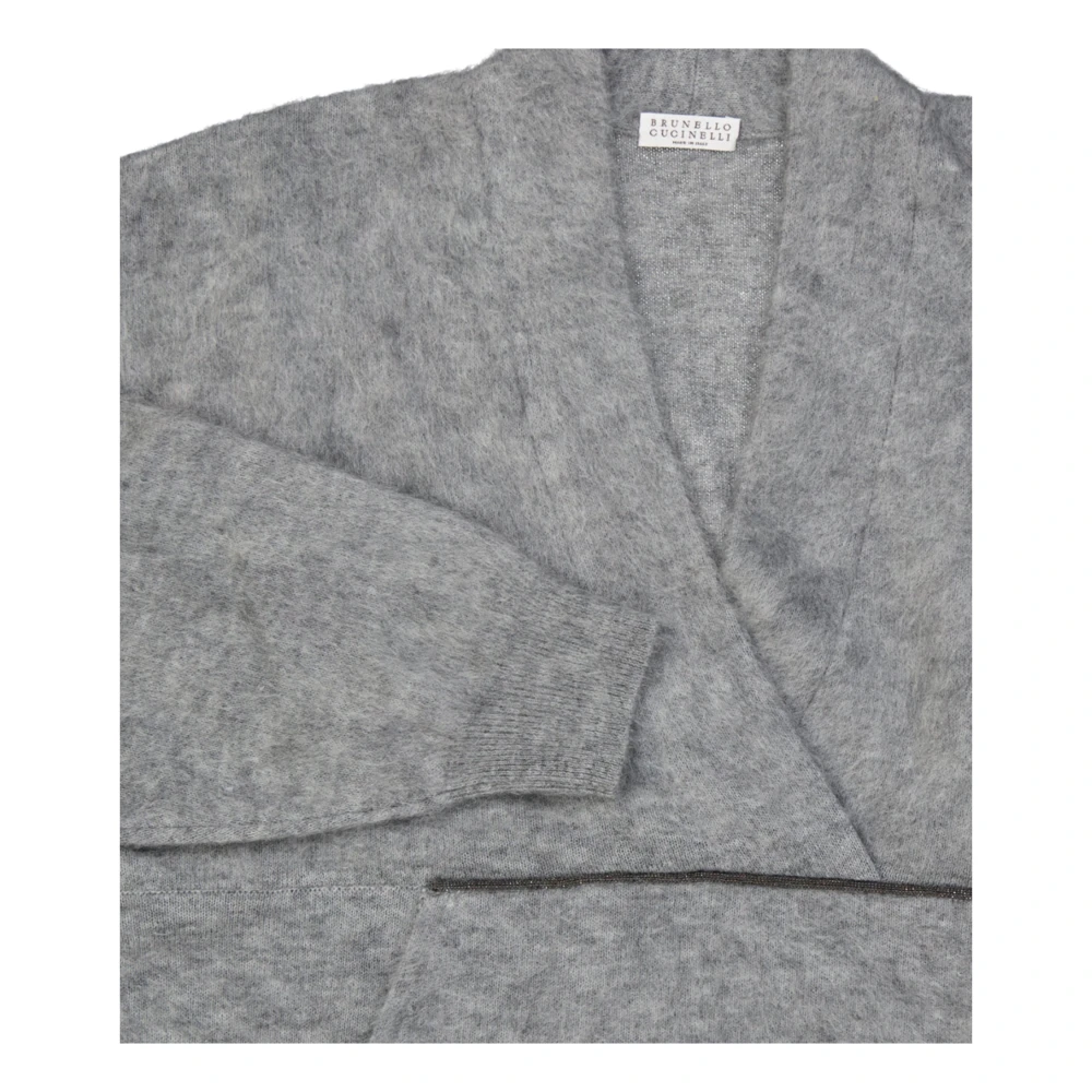 Blijf gezellig en stijlvol deze winter met de grijze Brunello Cucinelli Mohair Wool Pullover. Gemaakt van een luxueuze mix van mohair wol, wol, polyamide en kasjmier, heeft deze trui een flatterende v-hals en geribbelde manchetten. De voorzak voegt een functioneel tintje toe. Machinewasbaar op delicaat programma voor eenvoudig onderhoud. Perfect voor elke gelegenheid, is deze trui een must-have toevoeging aan je garderobe.