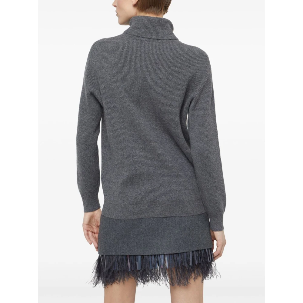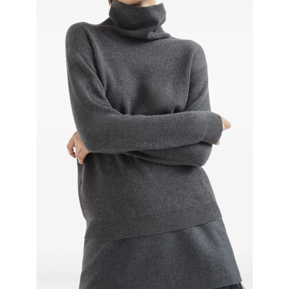 Upgrade je wintergarderobe met deze luxueuze turtleneck van Brunello Cucinelli in grijs kasjmier ribgebreid. Met hoge hals, lange mouwen en rechte zoom, is dit stuk versierd met het iconische fijne monili borduursel aan de achterkant van de hals. Maat International Standard; Regular Fit True to size.