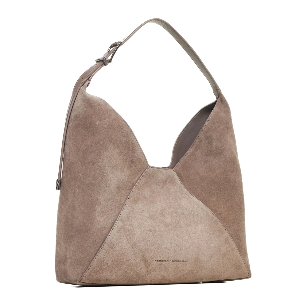 Upgrade je stijl met deze grijze sude hobo tas van Brunello Cucinelli voor vrouwen. De tas heeft een verstelbaar handvat met Monile details, een relif logo op de voorkant, interne magnetische knoopsluiting en dubbele interne platte zakken. Gemaakt van 100% leer.