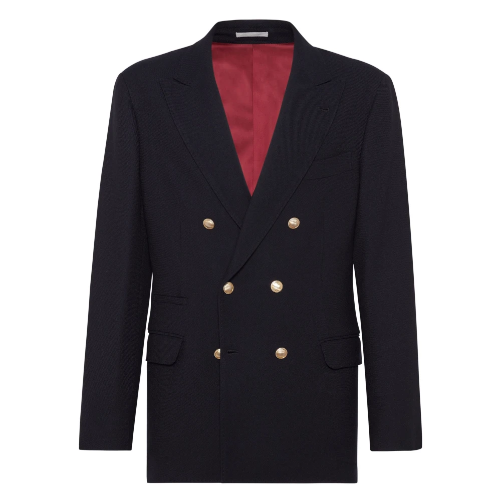 Brunello Cucinelli lichtbruine blazer voor heren met knoopsluiting aan de voorkant, een borstzak met bies, twee zijzakken met klep, en een dubbele split aan de achterkant.