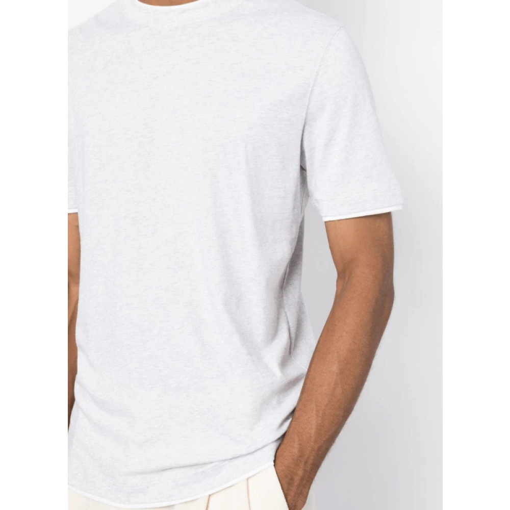 Upgrade je casual garderobe met dit lichtgrijze katoenen T-shirt van Brunello Cucinelli. Ontworpen met een klassieke ronde hals en korte mouwen, heeft dit veelzijdige kledingstuk een contrasterende afwerking voor een moderne uitstraling. Gemaakt van 100% katoen, biedt het zowel comfort als stijl. Maak je look compleet met deze tijdloze basic.