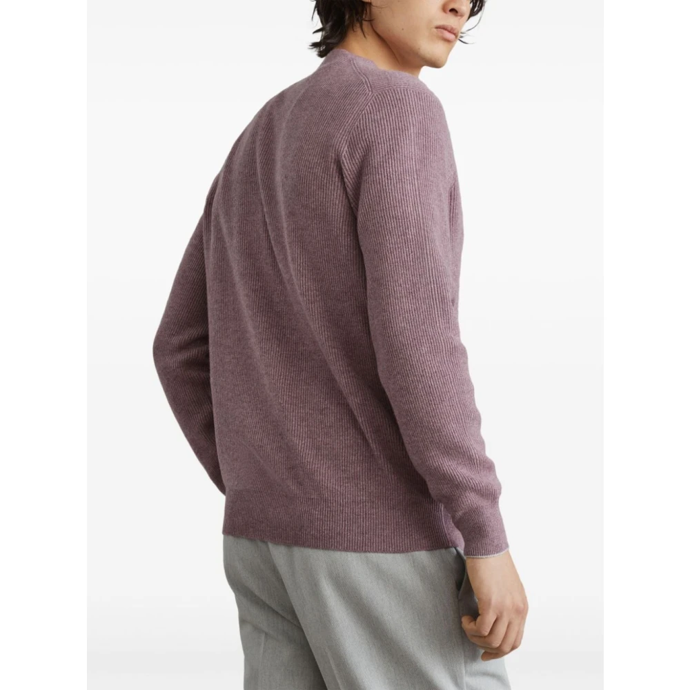 Upgrade je stijl met deze rode kasjmier ribgebreide V-hals van Brunello Cucinelli. Met lange mouwen en een rechte zoom is deze gebreide trui perfect voor de moderne man.