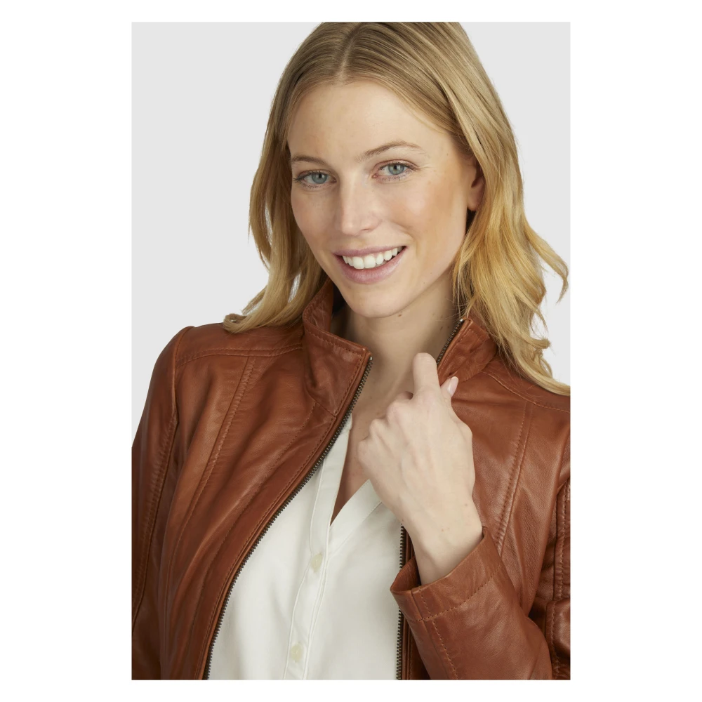 Verrijk je stijl met deze elegante Bugatti leren jas voor vrouwen. Gemaakt van hoogwaardig leer, deze jas heeft een opstaande kraag, ritsen en delicate decoratieve naden. De klassieke pasvorm straalt tijdloze elegantie uit, terwijl de gedetailleerde details een speciale touch toevoegen. Combineert stijl en functionaliteit op zijn best.