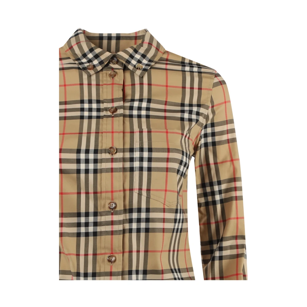 Burberry Geruite katoenen overhemd met borstzak Beige Dames