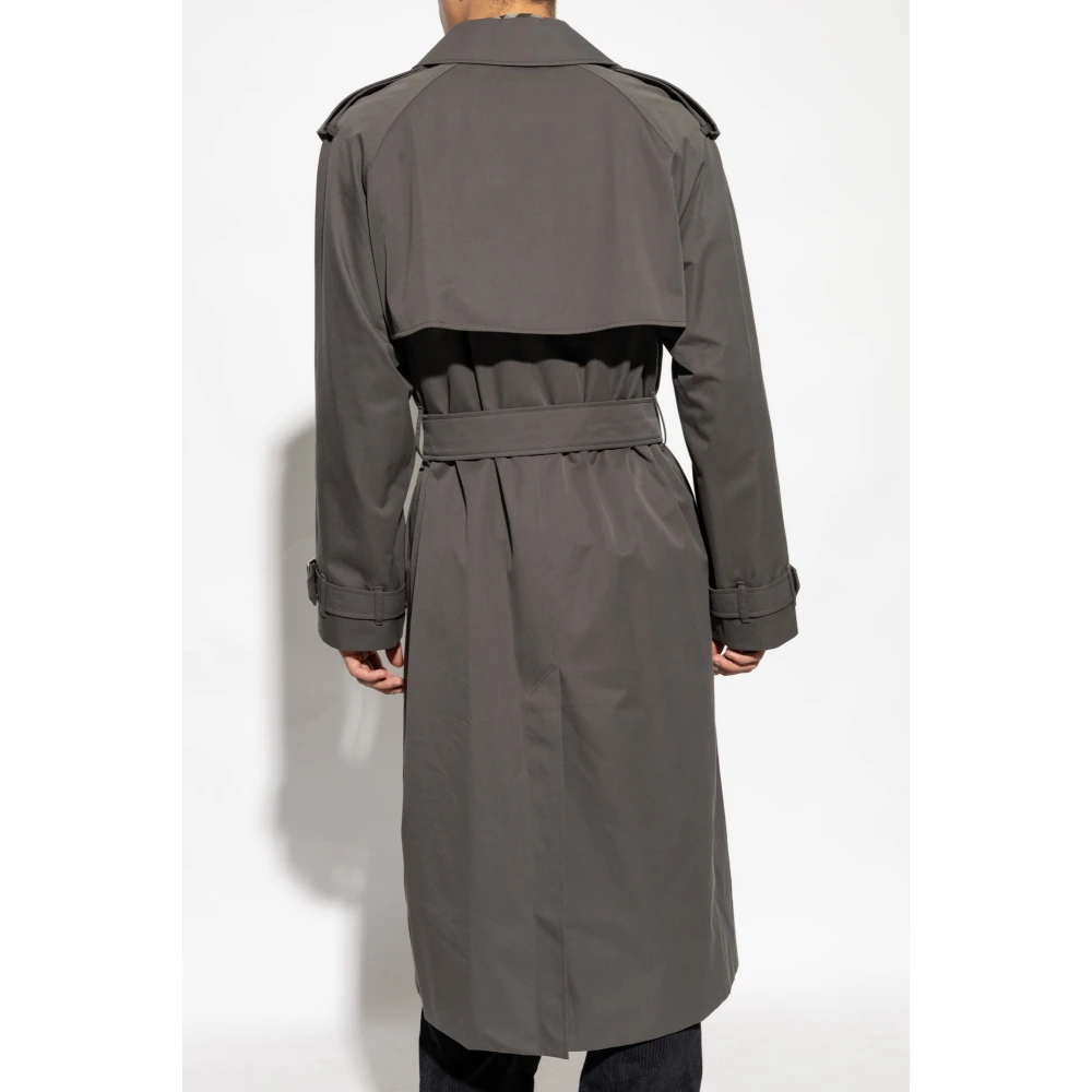 Maak kennis met de Katoenen Trenchcoat van het prestigieuze merk Burberry - een synoniem voor klasse en verfijning. Deze grijze jas uit de exclusieve herenkledingcollectie valt op door zijn elegante en klassieke ontwerp dat de silhouet accentueert terwijl functionaliteit behouden blijft. De trenchcoat heeft een Eenvoudige, Klassieke Snijt met een getailleerde taille, waardoor het een uniek karakter krijgt. De jaslengte reikt tot onder de knien, en de brede kraag en revers, samen met epauletten op de schouders, voegen een militaire stijl toe. Gemaakt van hoogwaardig katoen, zorgt het voor draagcomfort en duurzaamheid, terwijl de binnenvoering in het kenmerkende ruitpatroon een uitzonderlijke charme toevoegt. De details van de trenchcoat benadrukken zijn uniciteit: hij wordt gesloten met twee rijen grote, zwarte knopen en een haak, heeft een tailleband met een metalen gesp voor aanpassing, en verstelbare manchetten. De split aan de achterkant vergemakkelijkt de beweging, en twee klepzakken bieden extra gemak. Waarom ZOU U DIT Product Kopen? * Exclusief ontwerp van het gerenommeerde merk Burberry. * Hoogwaardig katoen dat comfort en duurzaamheid garandeert. * Elegante en klassieke uitstraling ideaal voor elke gelegenheid. * Doordachte details die de uniekheid van de jas benadrukken. * Praktische oplossingen zoals verstelbare bandjes en zakken. Modelafmetingen Hoogte: 193 cm Borst: 95 cm Taille: 82 cm Heupen: 93 cm Model draagt maat: 50"