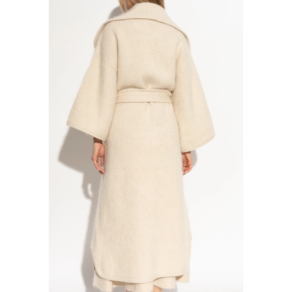 Wij presenteren u de Mirano Coat uit de exclusieve By Malene Birger collectie. Deze prachtige, lange jas met een relaxte pasvorm trekt de aandacht met zijn brede, ronde kraag en brede, iets verkorte mouwen. Gemaakt van een zachte, luxueuze stof, is het perfect voor koelere dagen en biedt niet alleen warmte, maar ook uitzonderlijk comfort. De dominante crme-beige tint geeft de jas een Elegante EN Klassieke Look. De tailleband zorgt voor een verstelbare pasvorm, terwijl het ontbreken van zichtbare knopen de minimalistische stijl benadrukt. Op de foto's, in een harmonieuze styling, is de jas gecombineerd met een aansluitende rok en top in vergelijkbare tinten. Waarom ZOU U DIT Product Kopen? * Een ontwerp van het gerenommeerde merk By Malene Birger, bekend om zijn tijdloze esthetiek. * Gemaakt van een luxueuze mix van wol, mohair, polyamide en elastaan. * Universeel kleurenschema dat bij veel outfits past. * Minimalistisch ontwerp met verstelbare pasvormopties. Modelmaten Hoogte: 176 cm Buste: 85 cm Taille: 60 cm Heupen: 89 cm Model draagt maat: S