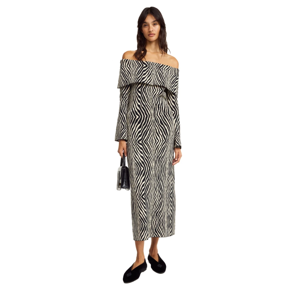 Ontdek de ongevenaarde elegantie van de BENNIE-jurk van het gerenommeerde Deense merk BY Malene Birger. Deze lange, aansluitende creatie met off-the-shoulder ontwerp is het toonbeeld van klassieke stijl en accentueert subtiel de silhouet. Gemaakt van zacht, rekbaar materiaal zorgt het voor draagcomfort en past perfect bij het lichaam. De kenmerkende brede kraag valt elegant over de schouders en creert een effect van elegante nonchalance, terwijl lange mouwen klasse en verfijning toevoegen aan de creatie. Het diepe zwart dat overheerst in deze styling geeft het een universele en chique uitstraling, waardoor de jurk perfect is voor verschillende gelegenheden. Waarom ZOU U DIT Product Kopen? * Hoogwaardig luxemateriaal: Lyocell en elastaan voor uitstekende elasticiteit en comfort. * Minimalistisch ontwerp met een tijdloze esthetiek, genspireerd op Scandinavische stijl. * Het merk By Malene Birger zorgt voor aandacht voor detail en compromisloze kwaliteit. * Universele kleur die past bij elke gelegenheid en silhouet. Modelmaten Hoogte: 176 cm Buste: 85 cm Taille: 60 cm Heupen: 89 cm Model draagt maat: S