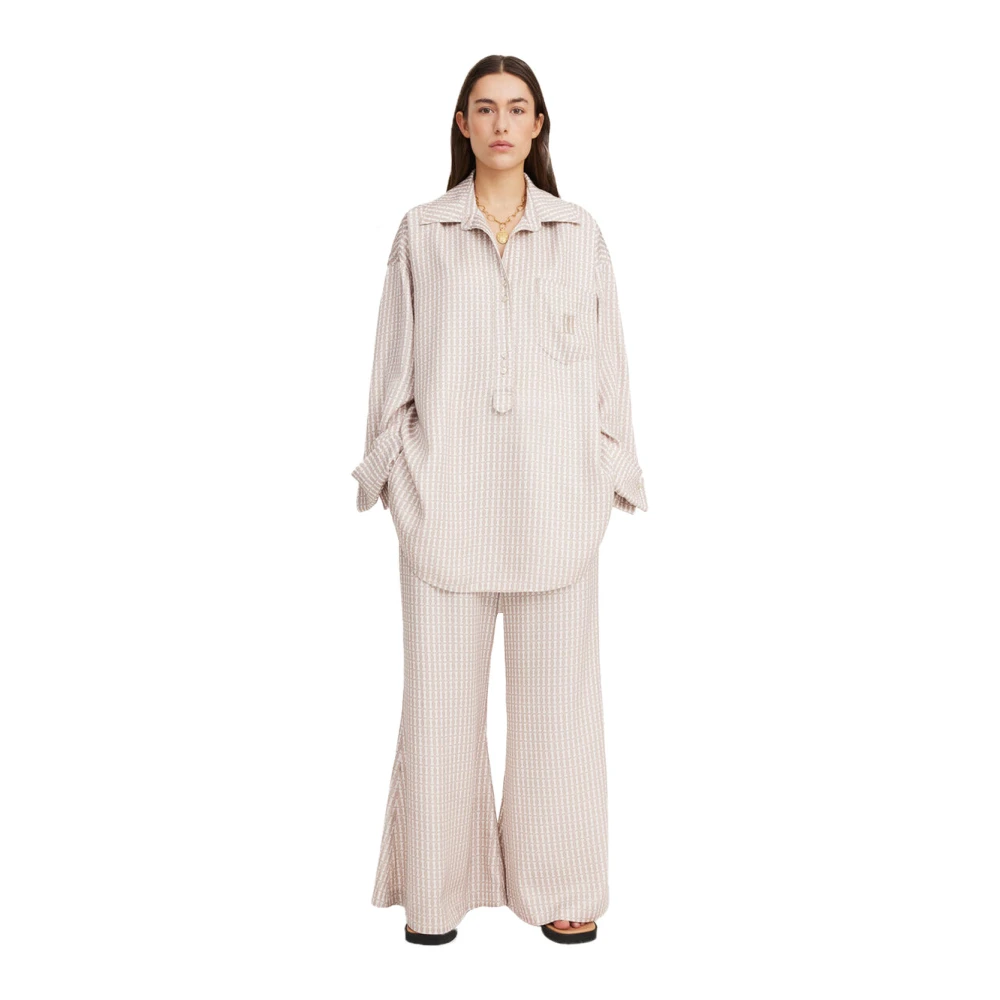 Verhoog je stijl met de By Malene Birger Maye Oversize Wide-Cuff Shirt. Deze relaxte en lichte blouse straalt betoverende charme uit voor elke gelegenheid. Combineer het met statement sieraden en eenvoudige schoenen voor een chique look. Gemaakt van 100% acetaat. By Malene Birger, een Scandinavisch label bekend om zijn verfijnde minimalistische stijl, biedt tijdloze ontwerpen met een moderne twist. Voel je krachtig en stijlvol in hun eigentijdse en bohemien stukken. Verzending wereldwijd.