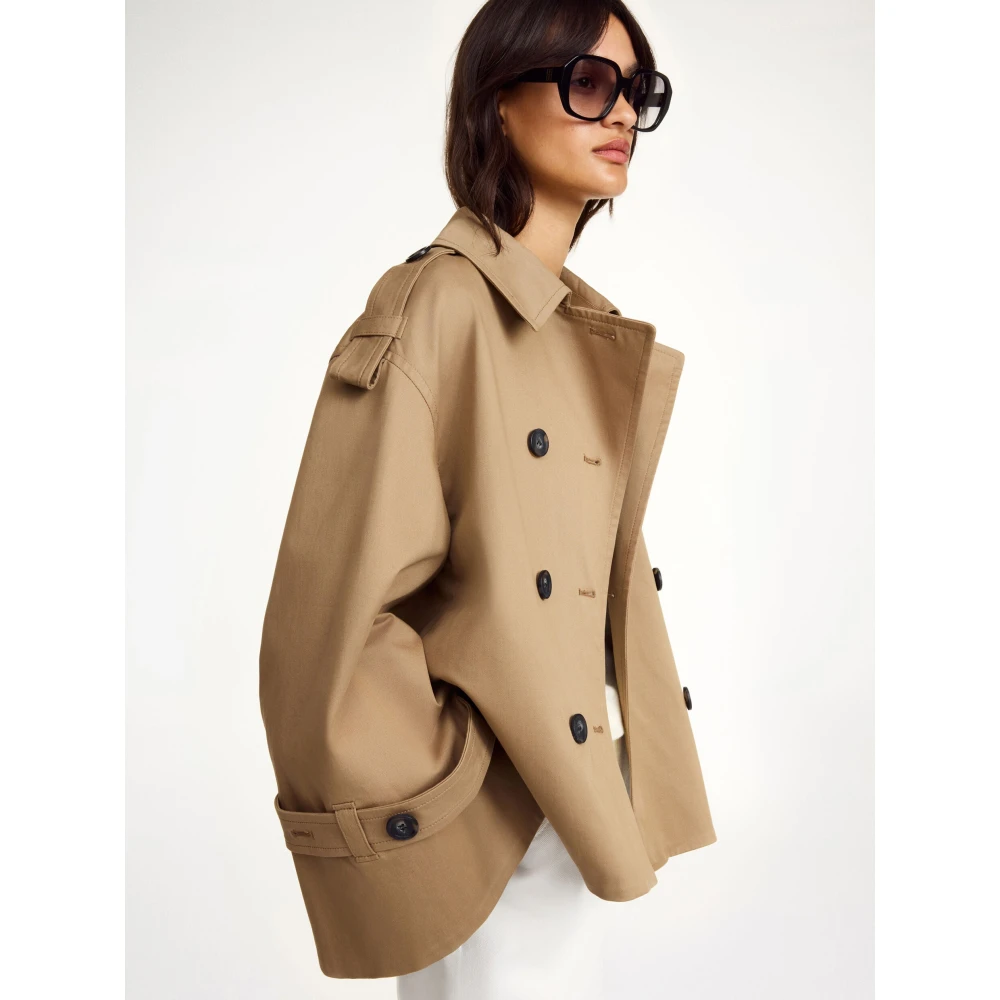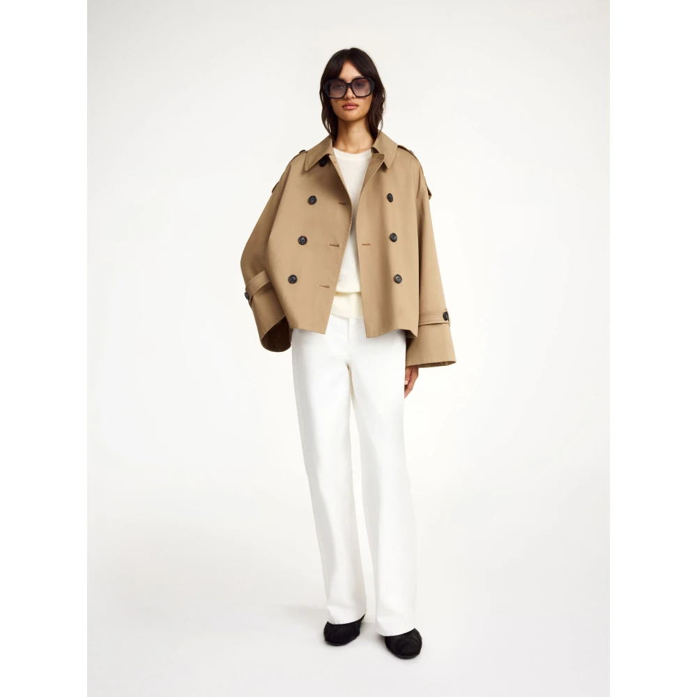 Blijf stijlvol in de Alisandra trenchcoat van By Malene Birger. Deze double-breasted jas is gemaakt van een biologisch katoenmengsel en heeft schouder-epauletten en riemdetails op de mouwen. Met een oversized pasvorm en wijde mouwen is het de perfecte overgangsjas. Model is 175 cm en draagt maat 36. Materiaal: 50% biologisch katoen, 48% katoen, 2% elastaan.