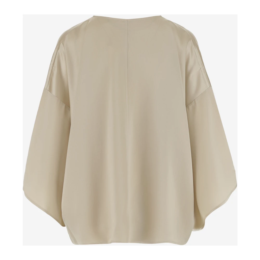Upgrade je garderobe met deze luxueuze blouse van By Malene Birger. Gemaakt van satijn, met een ronde hals, knoopsluiting aan de voorkant, verlaagde schouders, wijde mouwen en een rechte zoom voor een oversized pasvorm. In een chique ivoorkleur, gemaakt in China van een mix van 76% acetaat en 24% polyester.