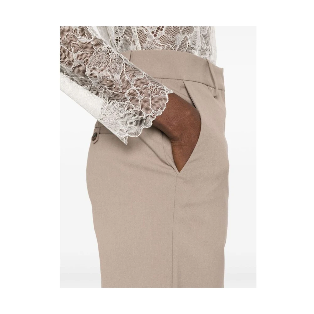 Upgrade je garderobe met deze taupe bruine straight trousers van By Malene Birger. Voorzien van riemlussen, persvouw, twee diagonale zakken, twee achterzakken met knoopsluiting en een recht been met verborgen knoop, haak en ritssluiting aan de voorkant.