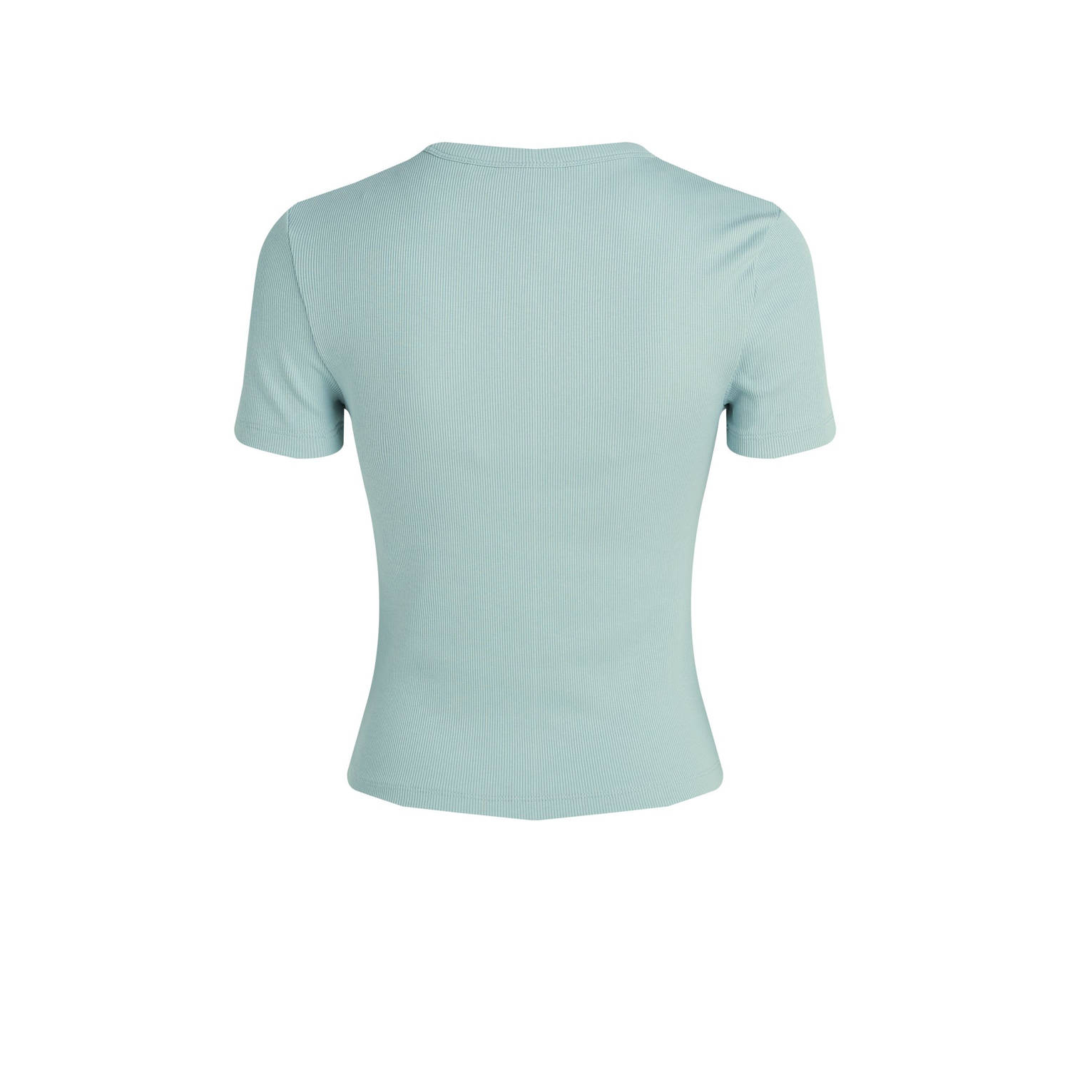 T-shirt voor dames van Calvin Klein Jeans. Mix van katoen en elastaan. Regular fit. Geribde ronde hals. Labeldetail. Ruglengte bij maat S: 50 cm