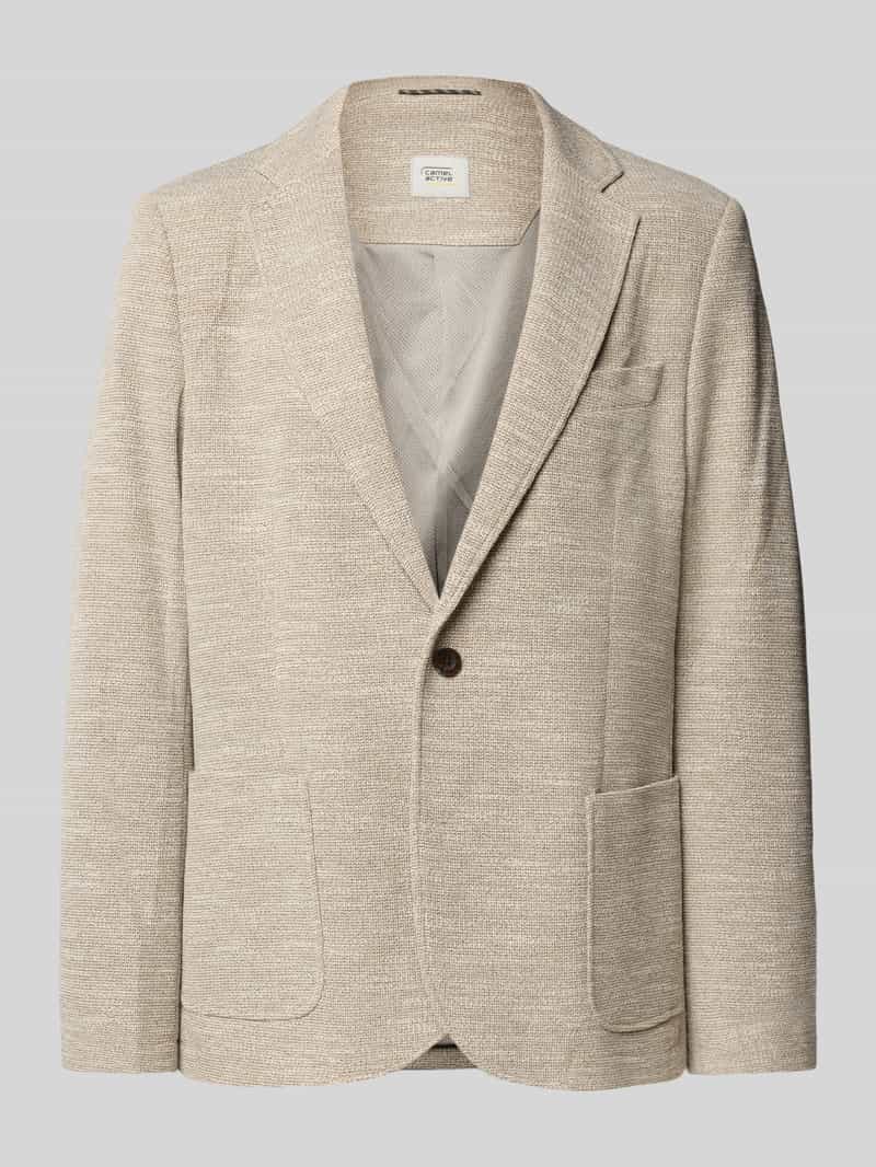2-knoops herencolbert van camel active. Materiaalmix met katoengehalte. Regular fit. Structuurpatroon. Reverskraag. Ruglengte bij maat 50: 74 cm. Schouderbreedte bij maat 50: 45 cm. Mouwlengte bij maat 50: 68 cm