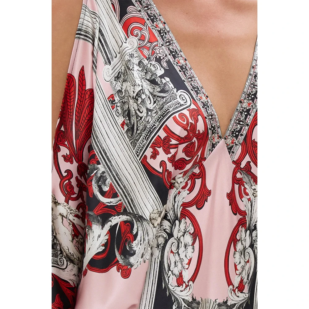 Verwen jezelf met de luxueuze Camilla Mark Of Medusa Plunge Neck Draped Shoulder Maxi Dress. Met de hand vervaardigd in Australi, deze zijden jurk heeft een klassiek Medusa-ontwerp in roze, rood en zwarte tinten. De jurk heeft een chique diepe halslijn, blootgestelde schouderdetails en zwierige lange mouwen voor een weelderige uitstraling. Gemaakt van 100% zijden charmeuse voor een glad en boterzacht gevoel op de huid. Perfect voor speciale gelegenheden of avondevenementen.